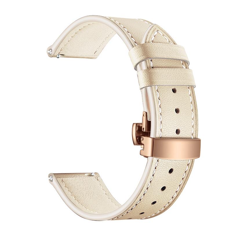 Каишка за Smart Watch 22мм, Leather Classic Buckle Strap, кожена /бежова + златна катарама/