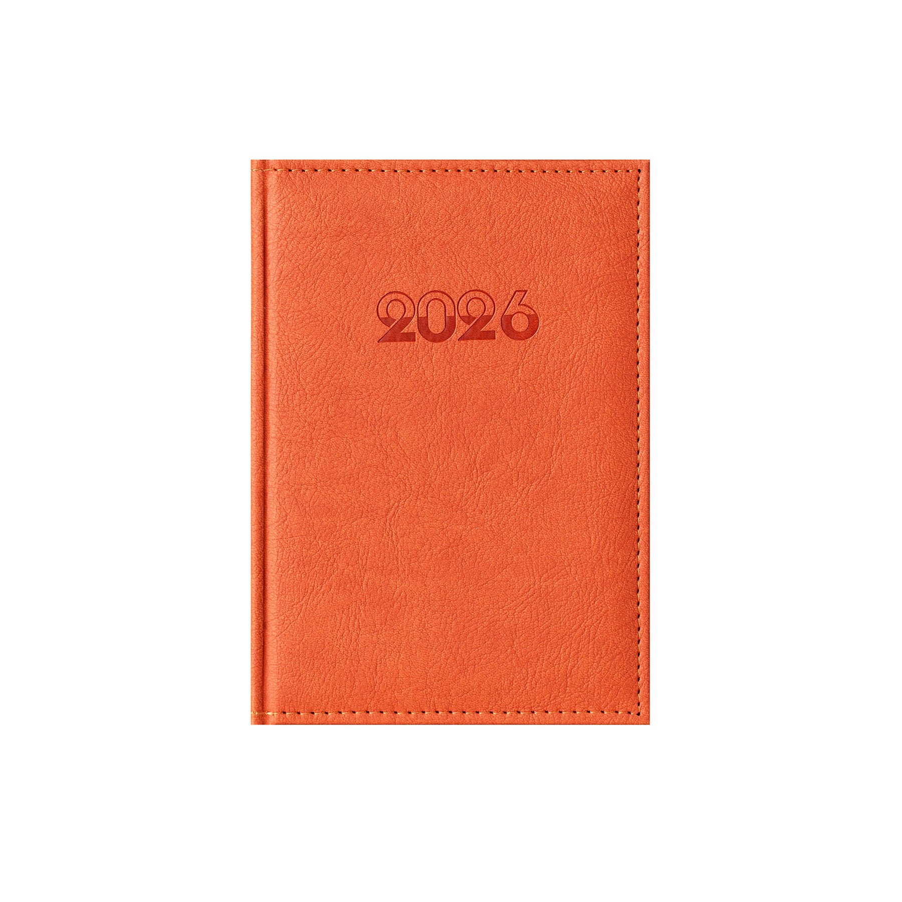 Календар-бележник Европа, с дати, A5, кожена подвързия, оранжев