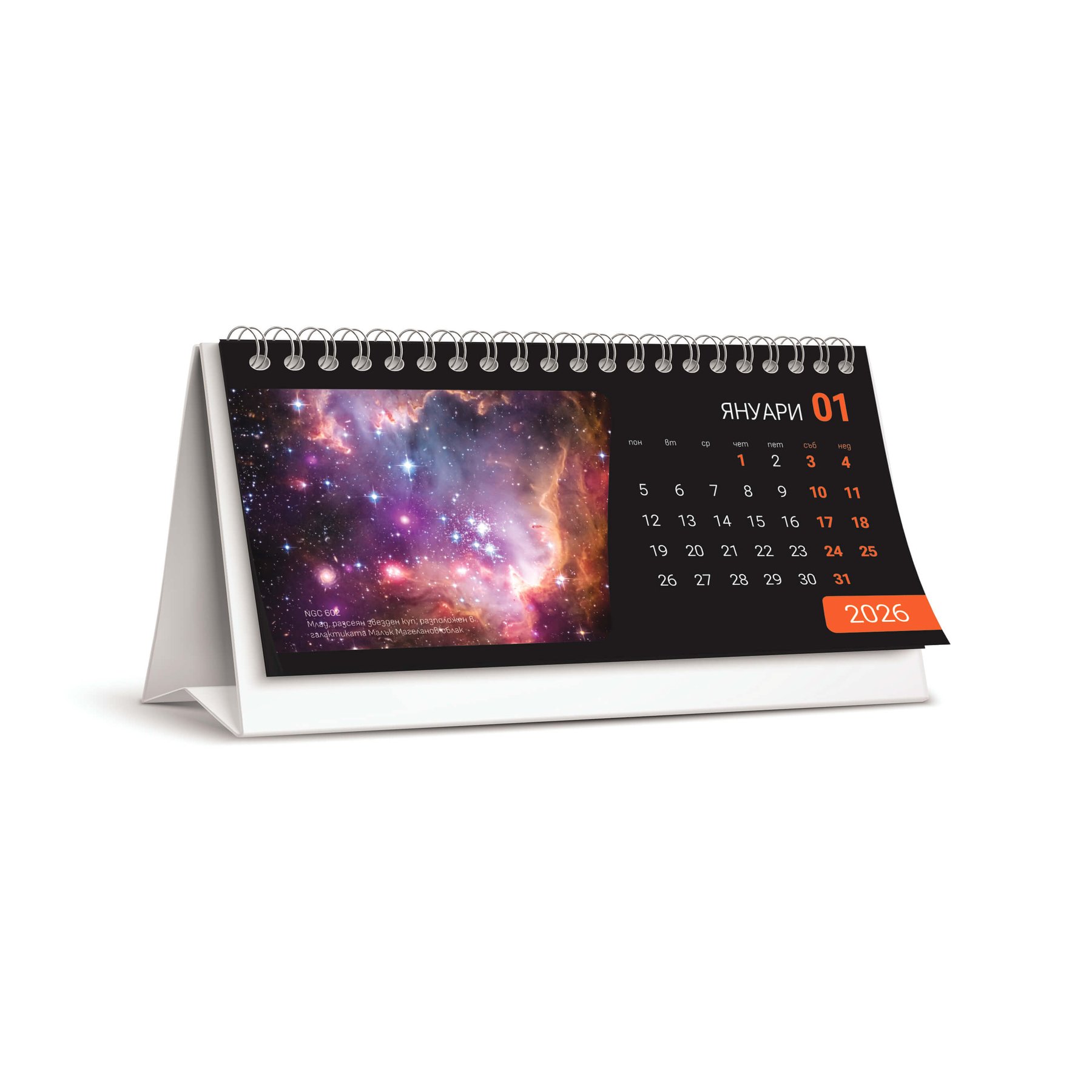 Календар Галактики, тип пирамида, 10 х 21 cm, DL, 12 страници, за 2026 година