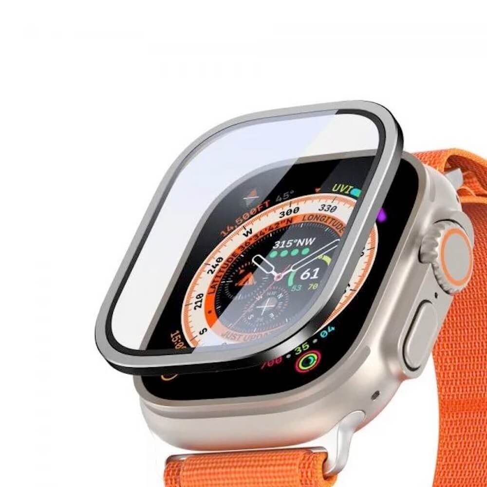 Калено стъклено защитно покритие с алуминиева рамка за Apple Watch Ultra, Ultra 2 49мм - Dux Ducis Flas Tempered Glass Protector With Aluminum Frame (черен-прозрачен)
