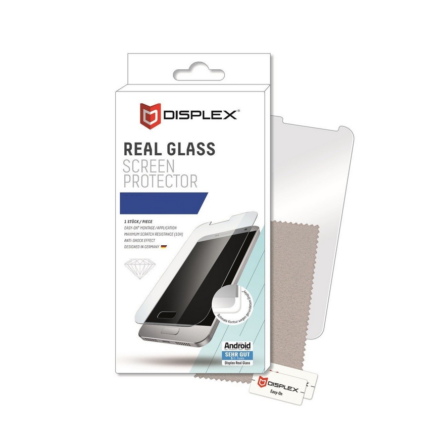 В комплекта: - 1 х Displex Real Tempered Glass - 1 x микрофибърна кърпичка - 1 х Easy-On® комплект за поставяне