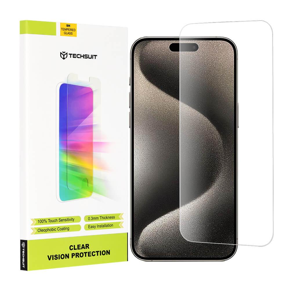 Калено стъклено защитно покритие за дисплея на iPhone 16 Plus, iPhone 15 Pro Max - Techsuit Clear Vision Tempered Glass Screen Protector 2.5D (прозрачен)