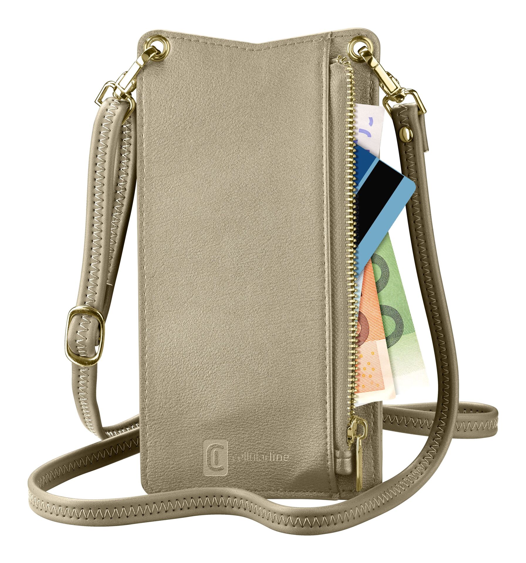 Универсален калъф, който се носи през рамо, така че винаги смартфона Ви да е до вас. Изработена е от мека изкуствена кожа и е снабдена с магнитно закопчаване с еластичен щифт, за да улесни премахването на смартфона. Разполага със задна монета и джоб за карти, той е удобен и практичен, което го прави идеален за ежедневна употреба.