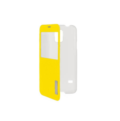 Калъф с отвор за екрана на Samsung Galaxy S5, Samsung Galaxy S5 Neo - Rock Side Flip Case Elegant Upgrade (жълт)