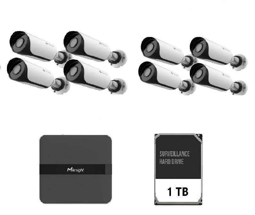 Камера за видеонаблюдение Milesight video surveillance Kit 8 pcs camera MS-C2964-Up + 1 pcs NVR  KIT8BULLET2MP