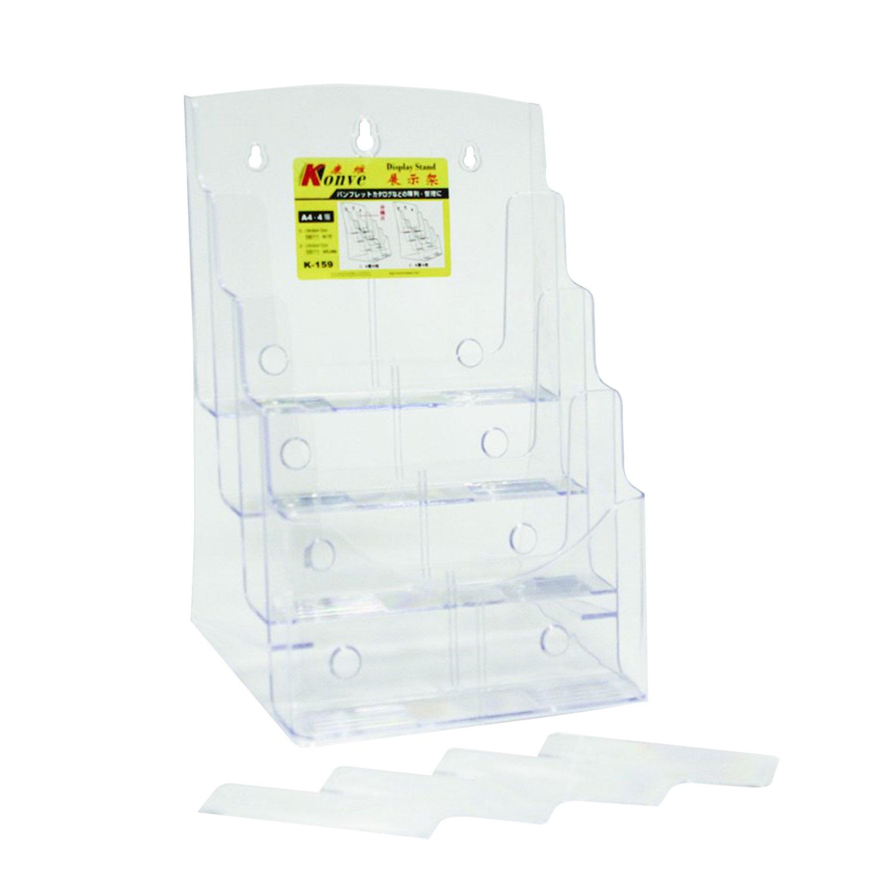 KEJEA Поставка за брошури, с четири позиции, вертикална, А4, прозрачна