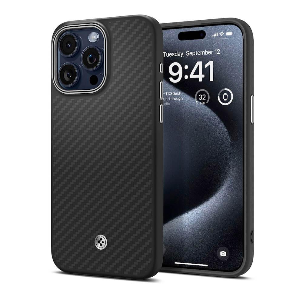 Кевларен кейс с MagSafe за iPhone 15 Pro (черен)  - Spigen Enzo Aramid MagSafe Case
