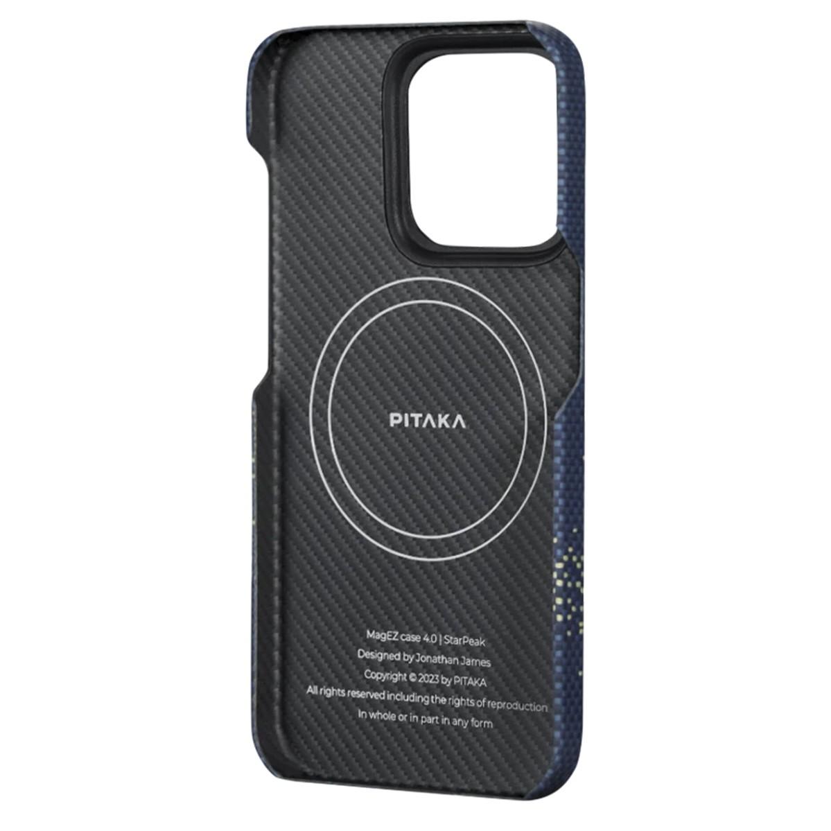 Кевларен кейс с MagSafe за iPhone 15 Pro - Pitaka MagEZ 4 1500D Star Peak Aramid Fiber MagSafe Case (син-жълт)