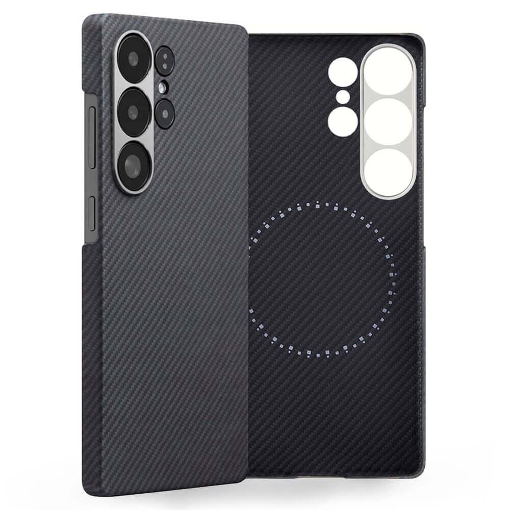 Кевларен кейс с MagSafe за Samsung Galaxy S25 Ultra (черен-сив)  - Edizard Air 600D Aramid Fiber MagSafe Case