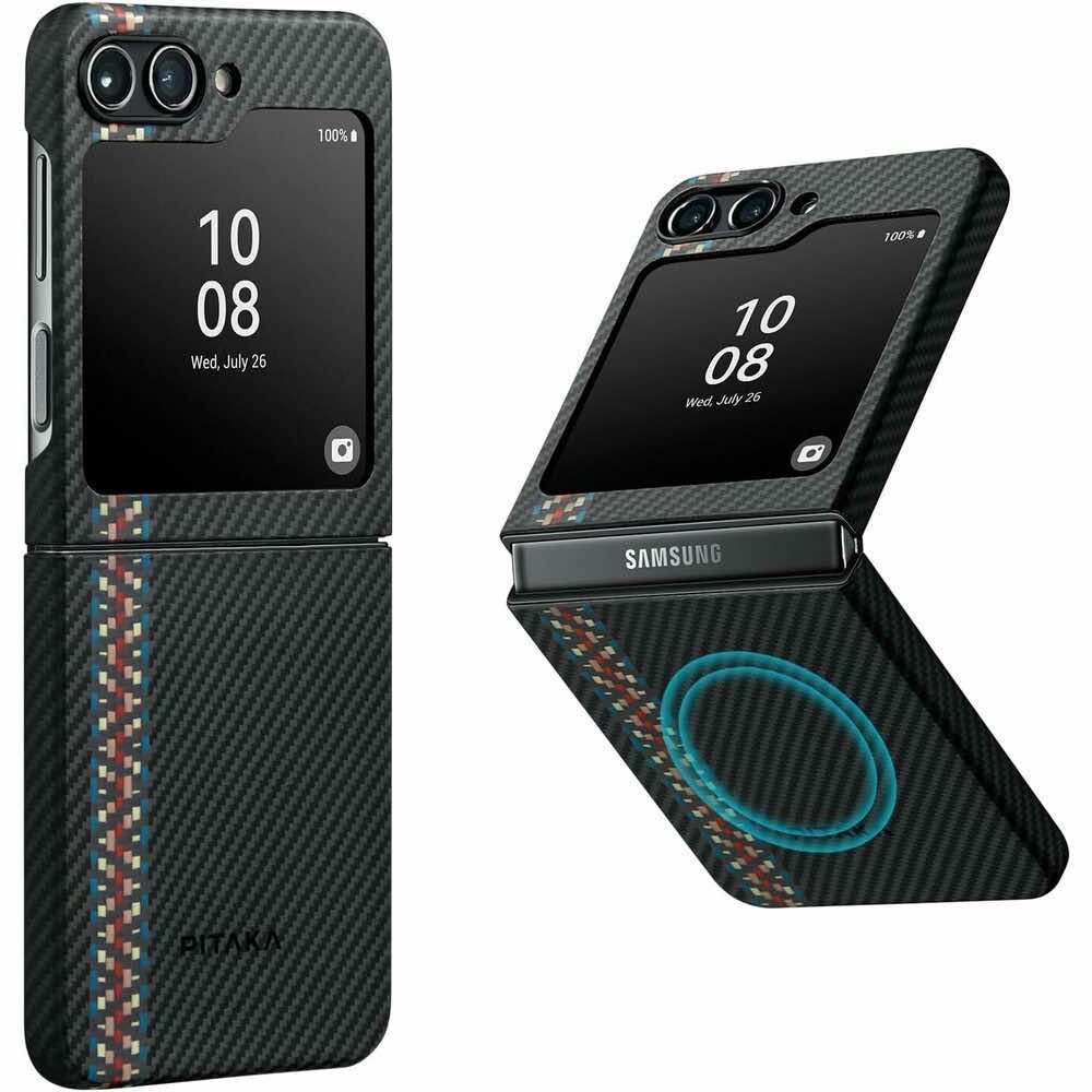 Кевларен кейс с MagSafe за Samsung Galaxy Z Flip5 (черен-сив)  - Pitaka MagEZ 3 600D Fusion Weaving Rhapsody Aramid Fiber MagSafe Case