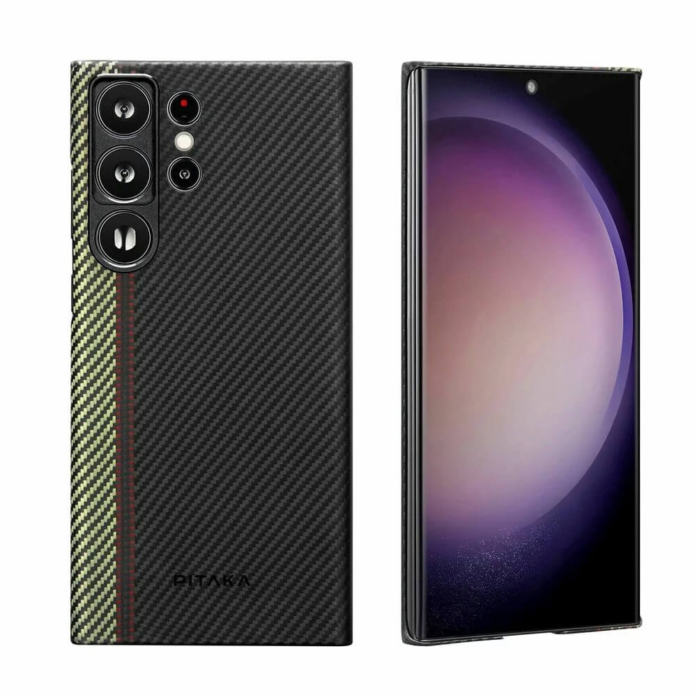 Кевларен кейс с MagSafe за Samsung Galaxys 23 Ultra (черен-зелен)  - Pitaka MagEZ 3 600D Fusion Weaving Overture Aramid Fiber MagSafe Case