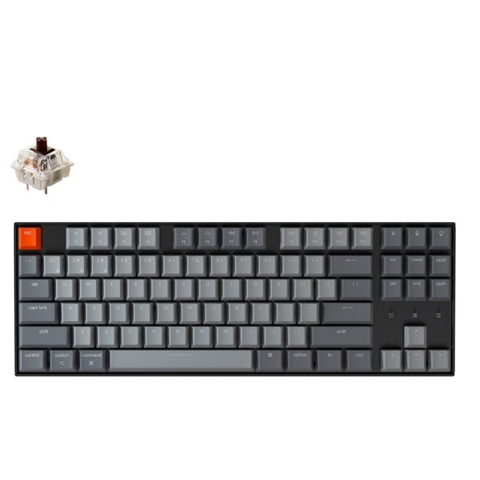 Engineered to maximize your productivity with most popular TKL layout. The hot-swappable option on Optical and Mechanical switches offers the freedom to easily personalize your typing experience without soldering. Connects with up to 3 devices via Bluetooth and switch among them easily. With high reliable and broad compatibility Broadcom Bluetooth 5.1 chipset, the K8 is best to fit home, office and light gaming use while connecting with your smartphone, laptop and iPad. It also has wired mode with USB Type-C connection. Compatible for both macOS and Windows. Keychron is one of only a few in the market that comes with a Mac multimedia keys layout for Mac enthusiasts. For Linux users, we also have a dedicated user group to help with the experience. Durable Gateron mechanical switch with a 50 million keystroke lifespan to provide an unrivaled tactile responsiveness. Designed with versatility in mind, you can access your smart assistant with the dedicated Siri or Cortana key on the K8. The two adjustable angled rubber feet are greatly enhanced productivity. Tenkeyless layout is one of the most popular among mechanical keyboards. It offers convenient access to all the essential multimedia and function keys for Mac and Windows in a compact size. The K8 comes with a battery capacity of 4000mAh. The K8 can last up to 240 hours typing (backlight off).