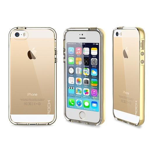 Кейс светещ при позвъняване за iPhone 5, iPhone 5S, iPhone SE - Rock Light Tube Case (прозрачен-златист)