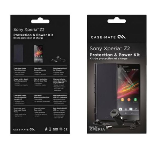 Комплект аксесоари за Sony Xperia Z2 - поликарбонатов кейс (barely there), зарядно за кола с USB изход (Sony AN401), MicroUSB кабел и защитно покритие за дисплея