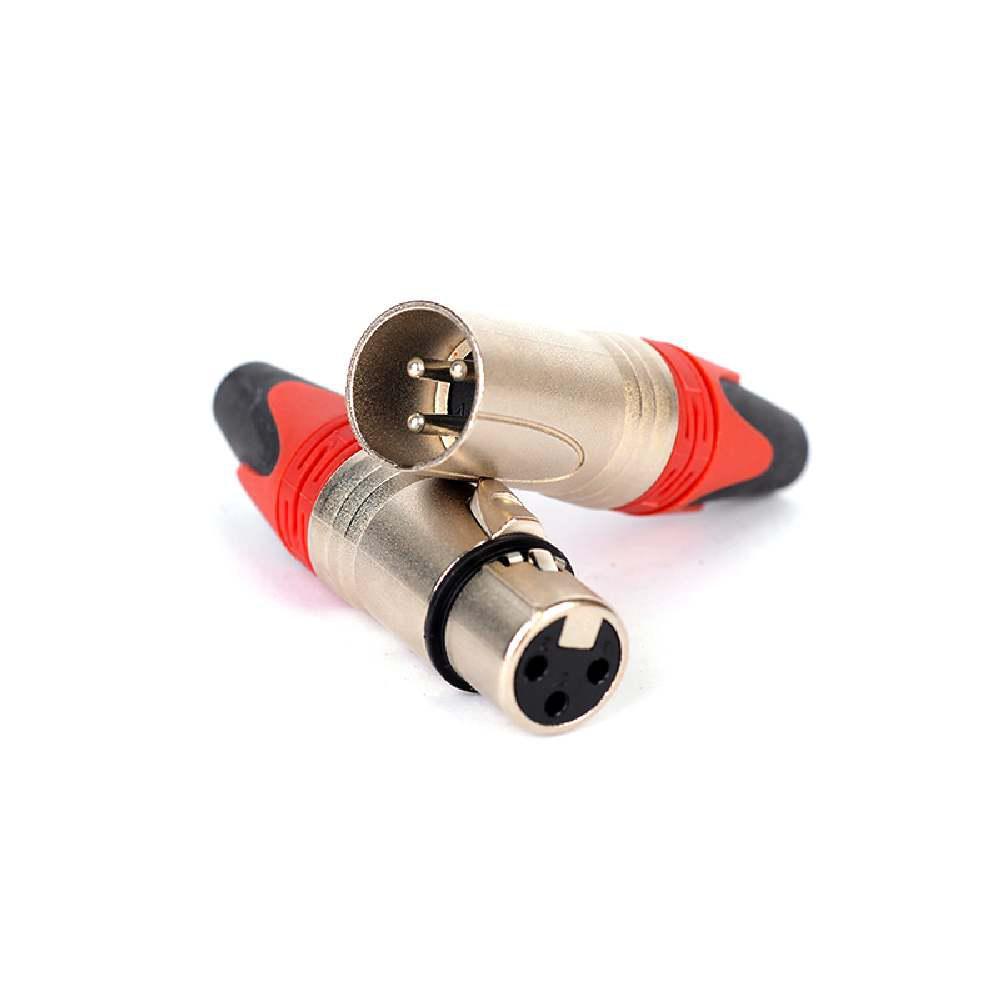 Букса канон(CANON,XLR), Комплект от 2 броя (1 брой мъжки, 1 брой женски), Високо качество, За монтаж към кабел, Метален, Цвят: червен, Цената е за 2 броя