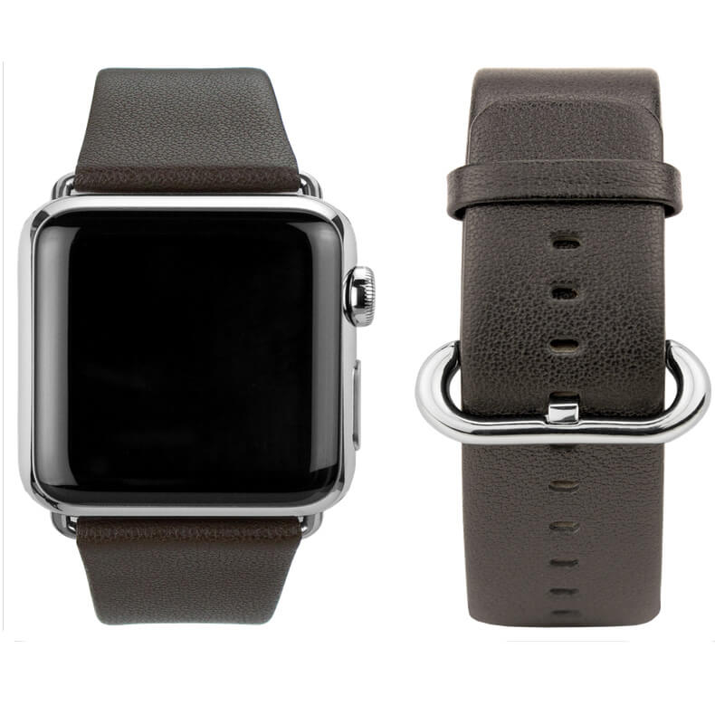 Изработени от естествена кожа и сребърно полирана закопчалка от неръждаема стомана, които се съчетават перфектно с изискания Apple Watch 42 мм