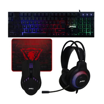 Комплект клавиатура, мишка, пад и слушалки Jedel CP-09, гейминг, RGB подсветка, 40mm говорители, 1000dpi, USB, черниКомплект клавиатура, мишка, пад и слушалки Jedel CP-09, гейминг, RGB подсветка, 40mm говорители, 1000dpi, USB, черни