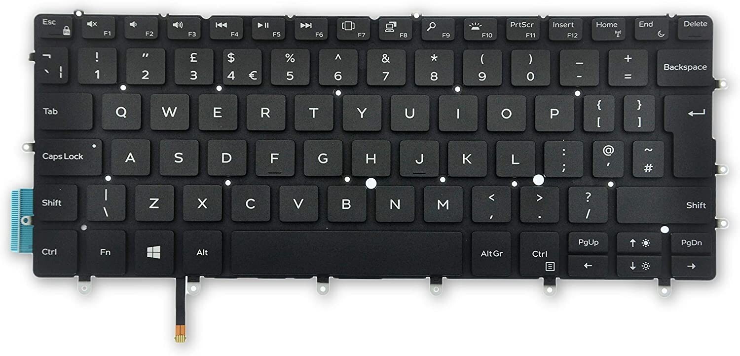 Клавиатура за лаптоп Dell XPS 13 9370 Черна Без Рамка (Голям Ентър) с Подсветка / Black Without Frame UK / IT With Backlit