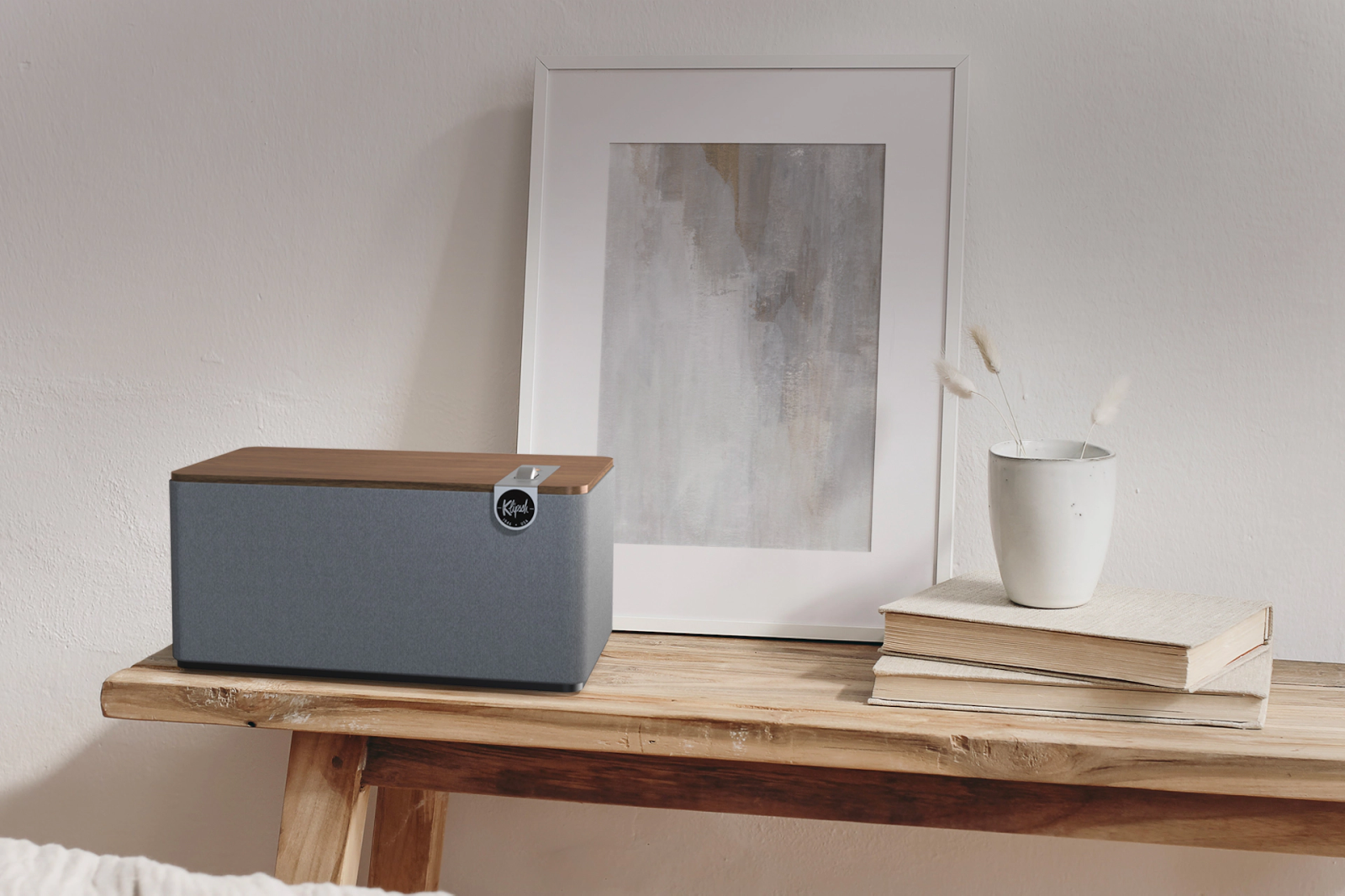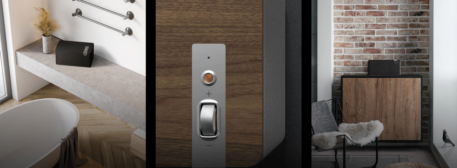 Incorporating luxury materials such as real wood veneer and tactile switches and knobs, The Three Plus Heritage Inspired tabletop speaker blends the acoustics and classic design legacy of Paul W. Klipsch with the latest technologies available today.