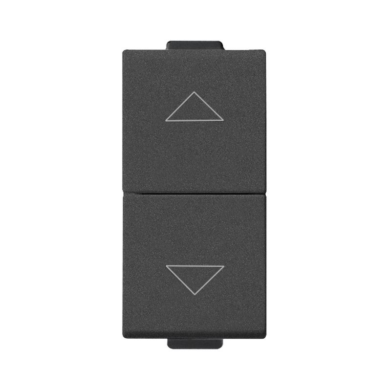 Ключ за щори двоен двуполюсен девиаторен ключ OFF централен 2P 10A 1 модул Карбон мат Neve Up. С две посоки (напр. НАГОРЕ / НАДОЛУ), стрелки и изключено положение по средата. Висока надеждност за ежедневна употреба в изискан цвят Карбон мат за стилни интериорни решения. Отличен избор за жилищни и бизнес среди.