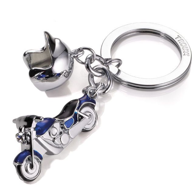 Ключодържател TROIKA, метален, хром гланц, цветен емайл, от два елемента - мотористка каска и мотоциклет