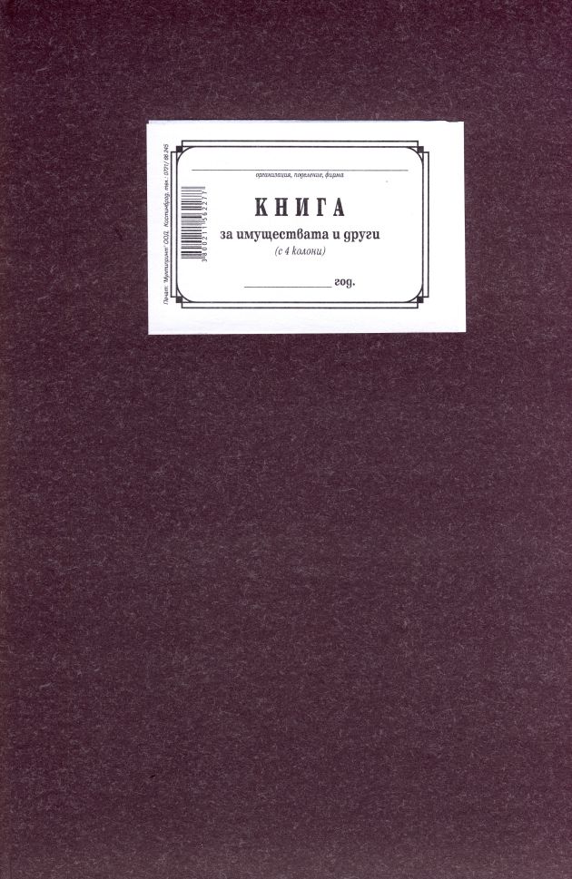Книга за имуществата 4 колони 1-1220, твърди корици, вестникарска хартия, В4, 100 л.