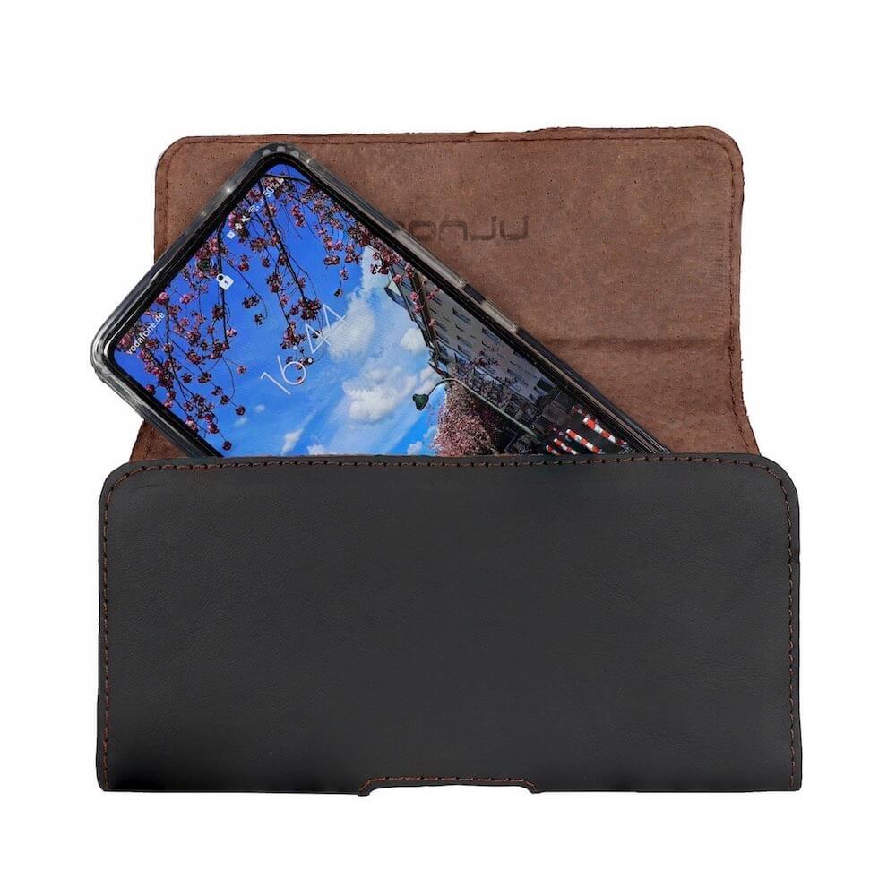Кожен (естествена кожа) калъф за смартофни с размери до 170 x 85 мм - Honju Horizon Smooth Belt Leather Case Universal XL (черен)