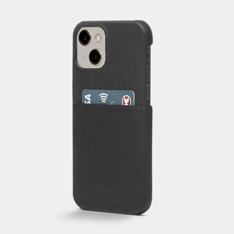 Кожен (естествена кожа) кейс с джоб за кредитна карта за iPhone 12 mini - Trunk Leather Wallet Case (черен)