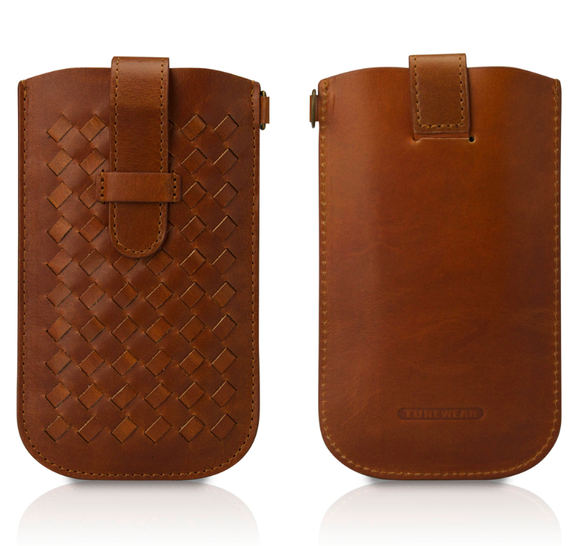 Кожен калъф (естествена кожа) с лента за издърпване за мобилни телефони - Tunewear Tunepouch Cuoio (кафяв)