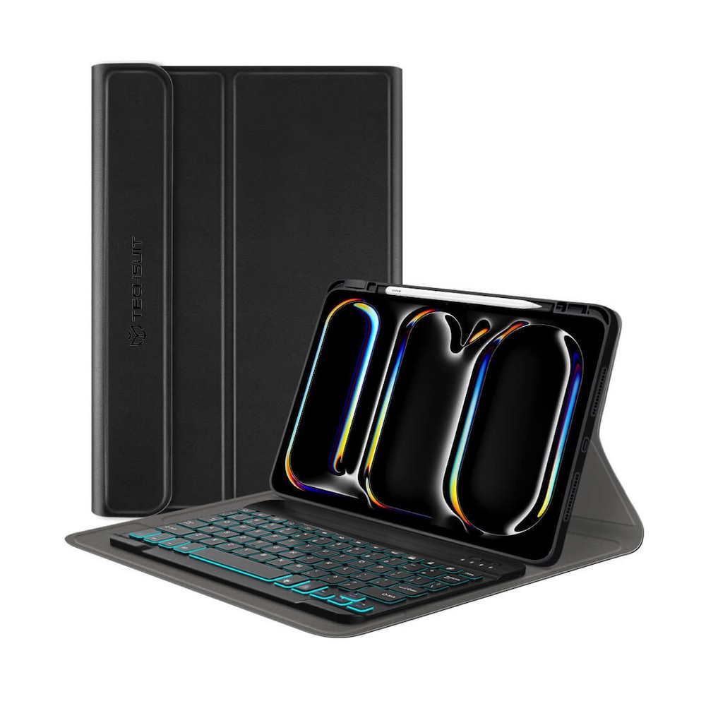 Кожен калъф и безжична блутут клавиатура за iPad Pro 11 (2024) - Techsuit CozyTab Case and Bluetooth Keyboard (черен)