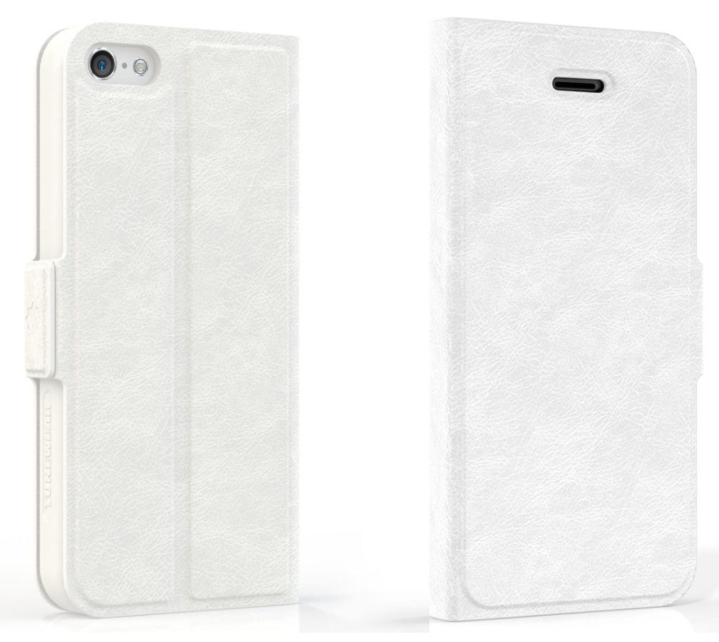 Кожен калъф с фолио и поставка за iPhone 5C - Tunewear Tunefolio (бял)