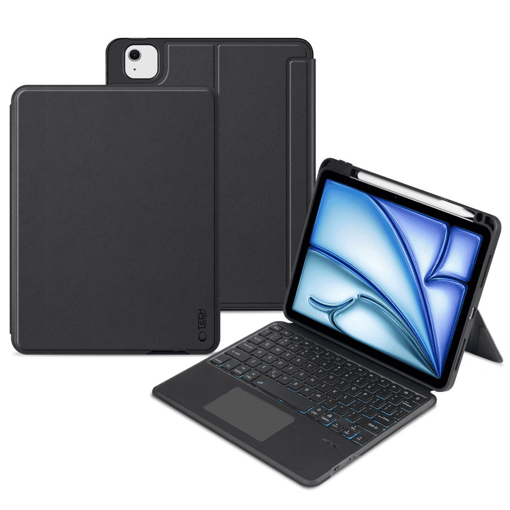 Кожен калъф с магнитно закрепяне и безжична блутут клавиатура за iPad Air 11 (2024), iPad Air 5 (2022), iPad Air 4 (2020) - Tech-Protect SmartCase Mag Pen and Keyboard (черен)