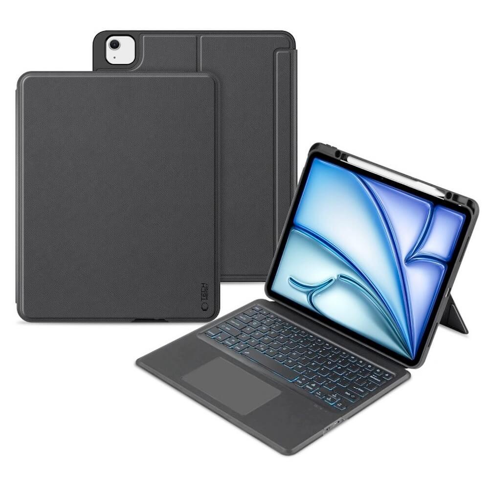 Кожен калъф с магнитно закрепяне и безжична блутут клавиатура за iPad Air 13 (2024), iPad Air 13 (2025) - Tech-Protect SmartCase Mag Pen and Keyboard (черен)