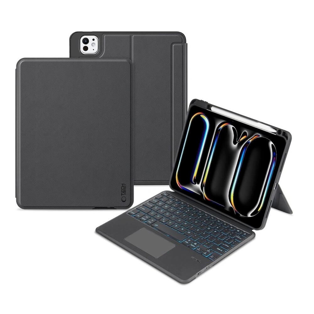 Кожен калъф с магнитно закрепяне и безжична блутут клавиатура за iPad Pro 11 (2024) - Tech-Protect SmartCase Mag Pen and Keyboard (черен)