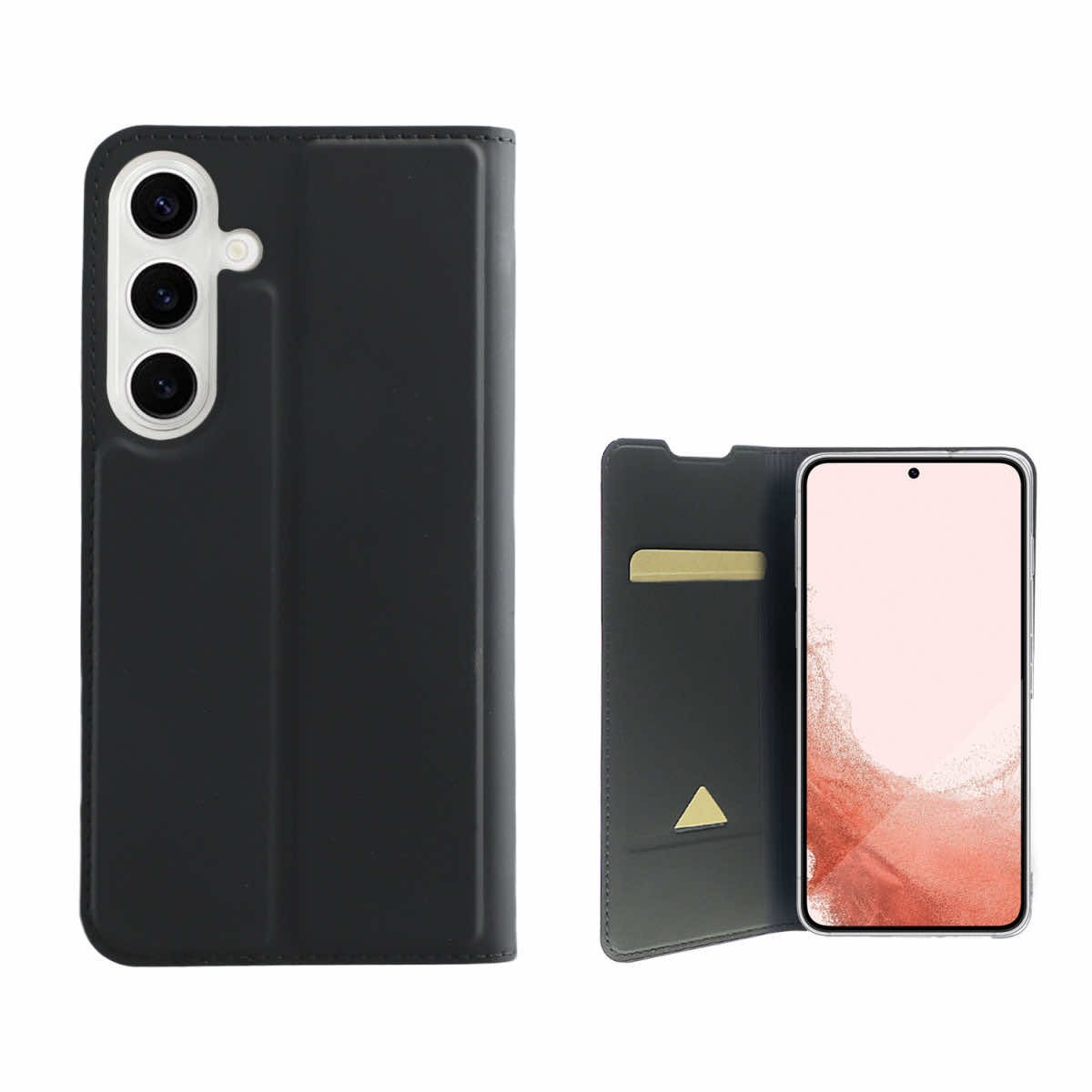 Кожен калъф с поставка и отделение за кр. карта за Samsung Galaxy S24 - 4smarts Flip Case Urban Lite (черен)