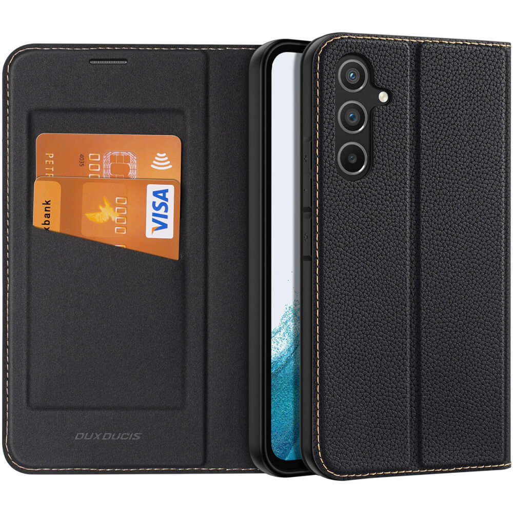 Кожен калъф с поставка и отделение за кр. карти за Samsung Galaxy A54 5G - Dux Ducis Skin X2 Case (черен)