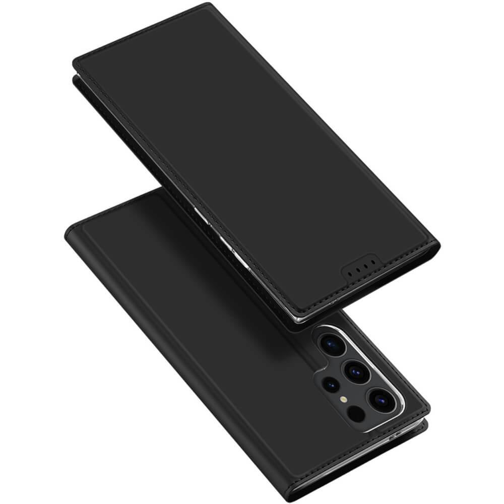 Кожен калъф с поставка и отделение за кр. карти за Samsung Galaxy S24 Ultra - Dux Ducis Skin Pro Case (черен)