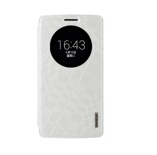 Кожен калъф с поставка и отвор на капака за LG G3 - Baseus Flip Case Brocade Window Series (бял)