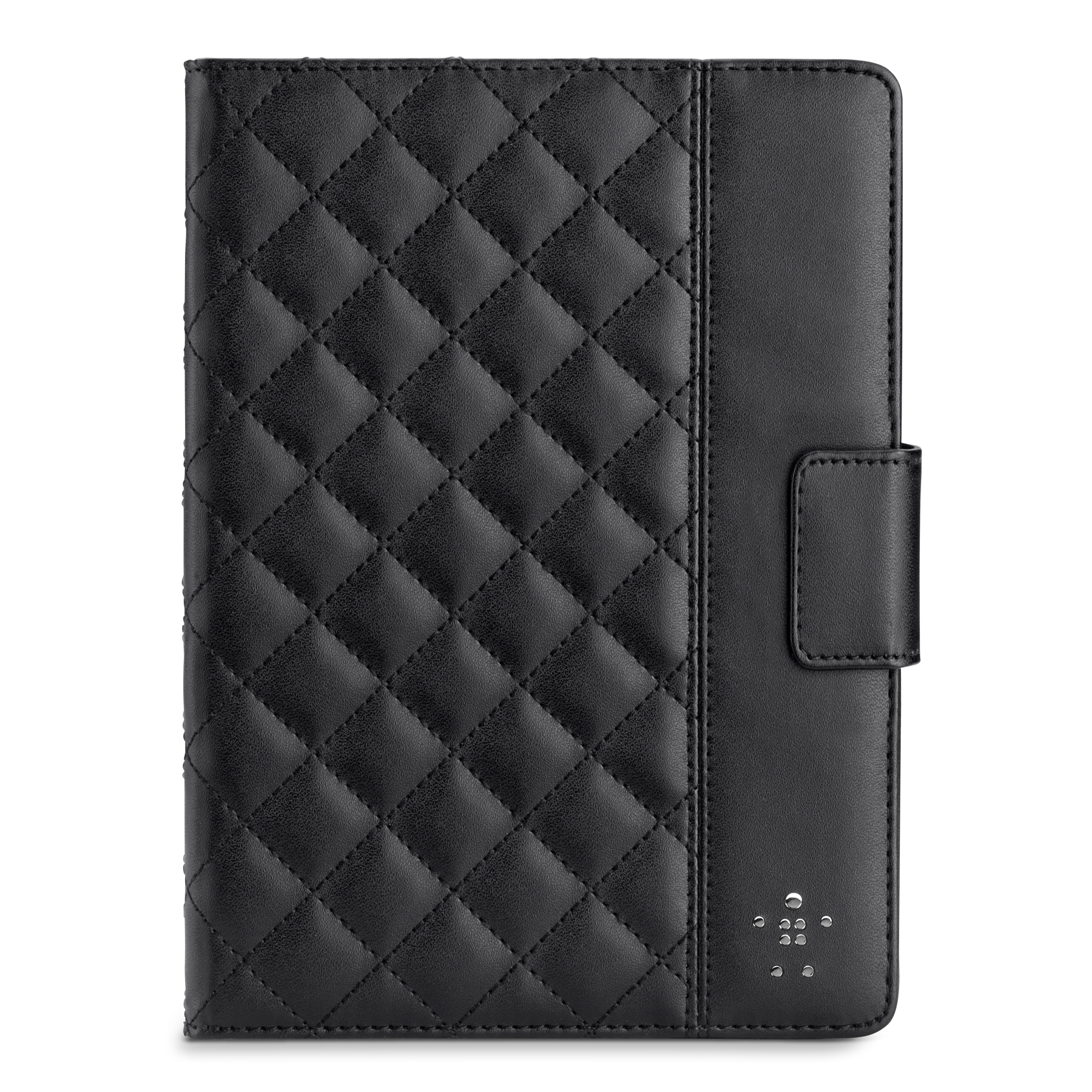 Екстериор от черна еко кожа, комбинирана с магнитна закрепваща лента, която предпазва калъфа от отваряне
