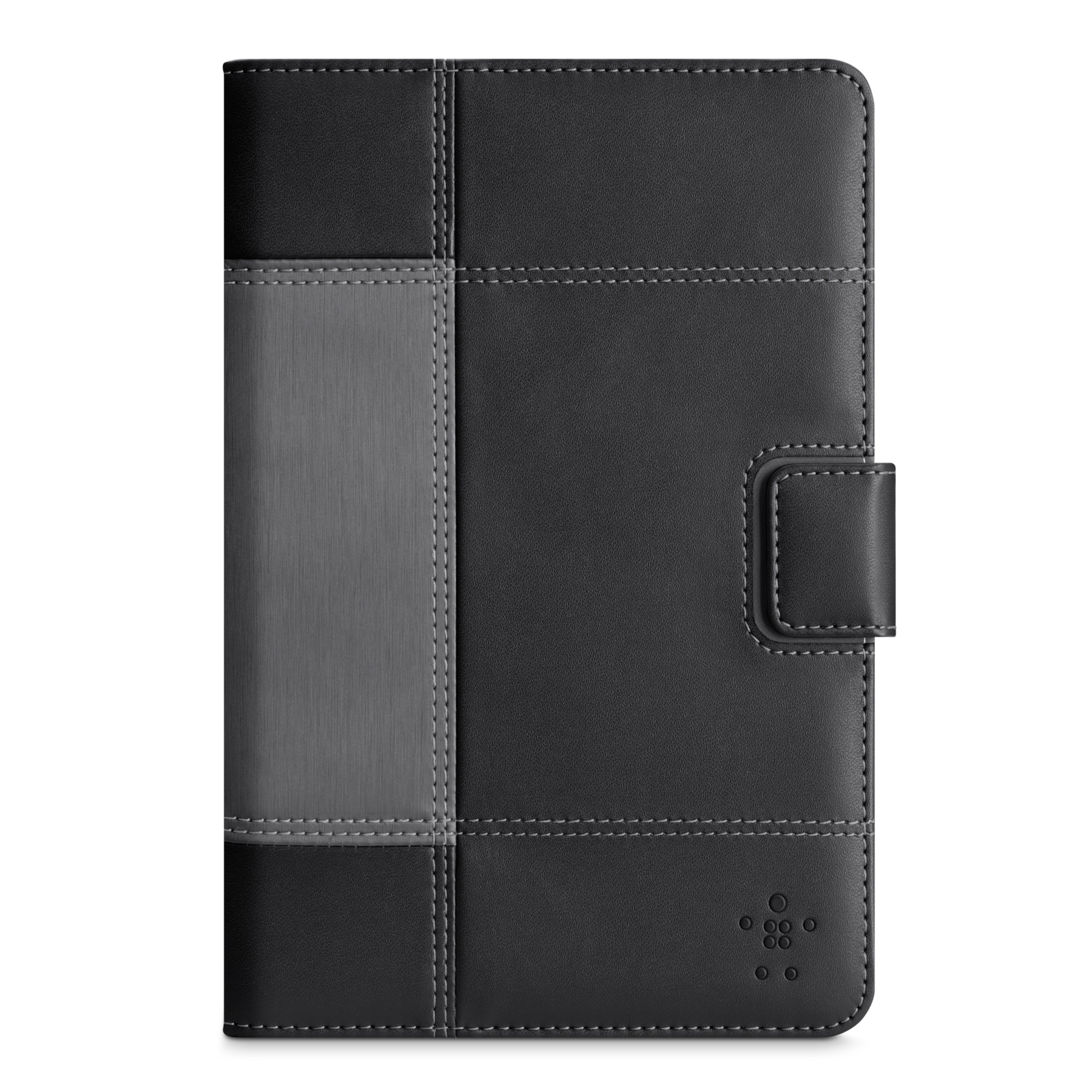Външната част на този Belkin калъф е направена от черна еко кожа, комбинирана със сиви лъскави елементи