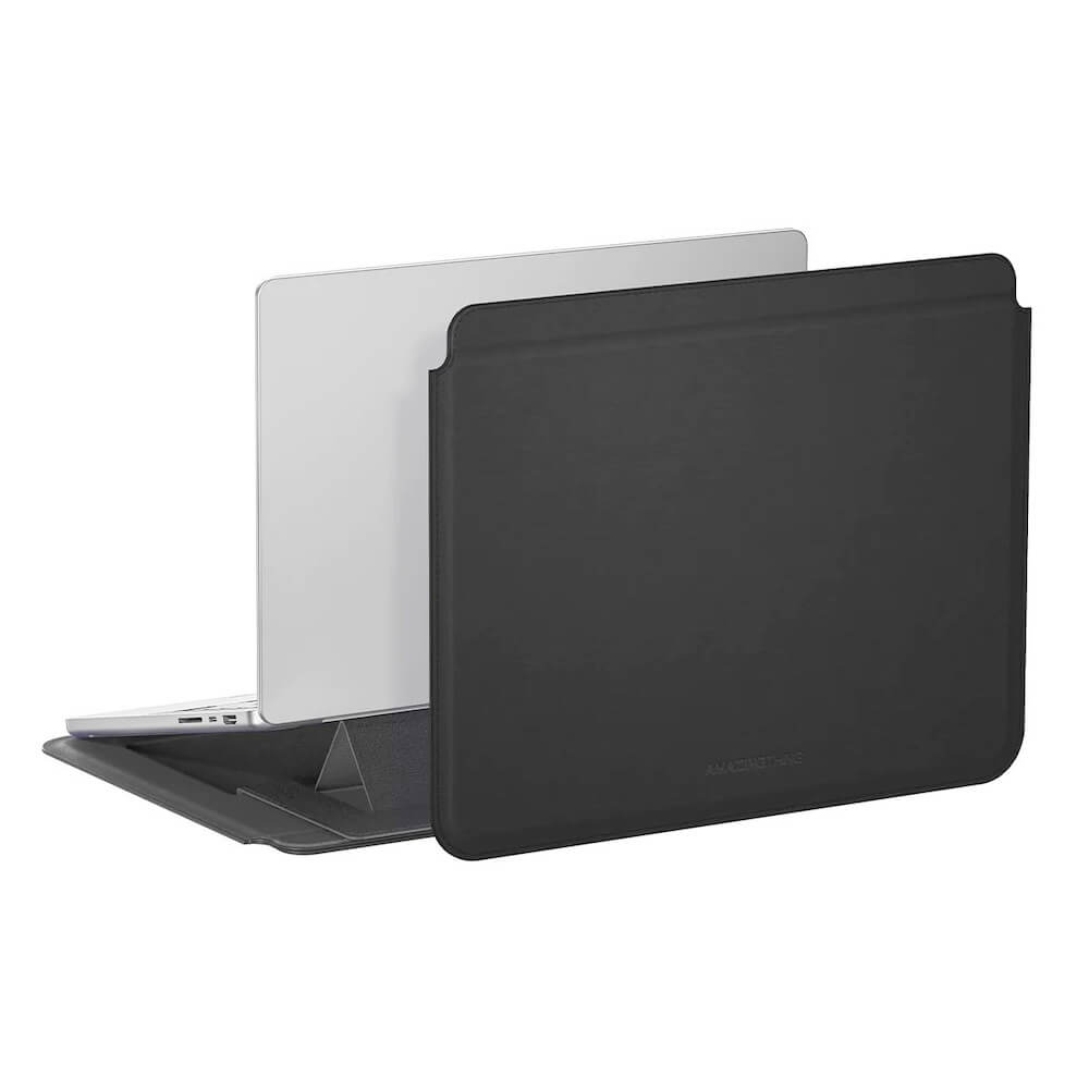 Кожен калъф с поставка за MacBook Air 13, MacBook Pro 13, MacBook Pro 14 и лаптопи до 14 инча - AmazingThing Matte Pro Mag Laptop Sleeve with Stand 14 (черен)