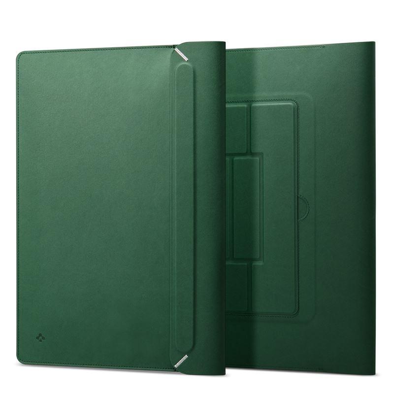 Кожен калъф с поставка за MacBook Air 13, MacBook Pro 13, MacBook Pro 14 и лаптопи до 14 инча - Spigen Valentinus S Laptop Sleeve 14 (зелен)