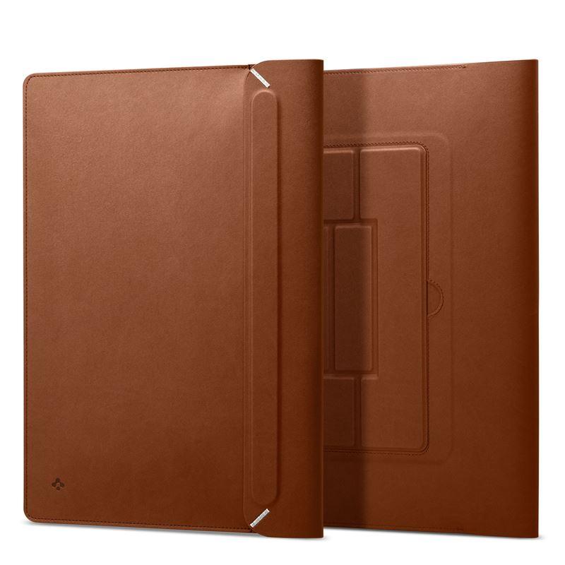Кожен калъф с поставка за MacBook Air 13, MacBook Pro 13, MacBook Pro 14 и лаптопи до 14 инча - Spigen Valentinus S Laptop Sleeve 14 (кафяв)