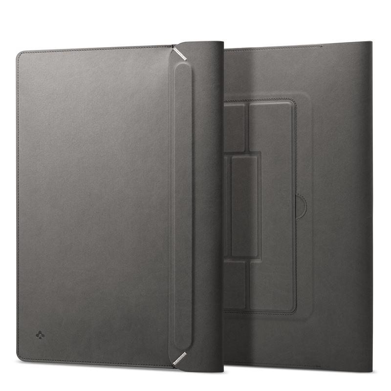 Кожен калъф с поставка за MacBook Air 13, MacBook Pro 13, MacBook Pro 14 и лаптопи до 14 инча (сив) - Spigen Valentinus S Laptop Sleeve 14 (нарушена опаковка)