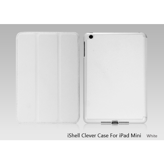 Кожен калъф, тип папка и поставка за iPad mini, iPad mini 2, iPad mini 3 - Shield iShell Clever Case (бял)