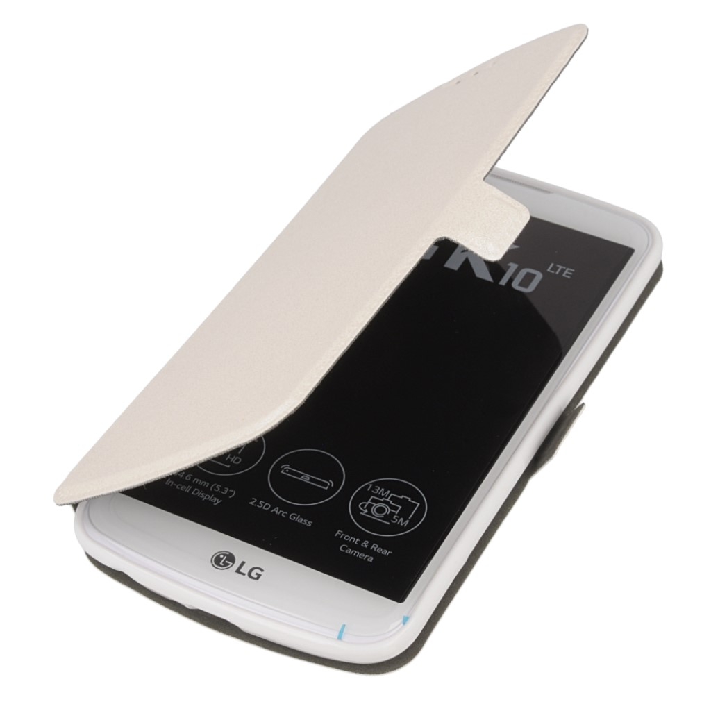 Кожен калъф, тип портфейл и поставка за LG K10 - Wallet Flip Case (бял)
