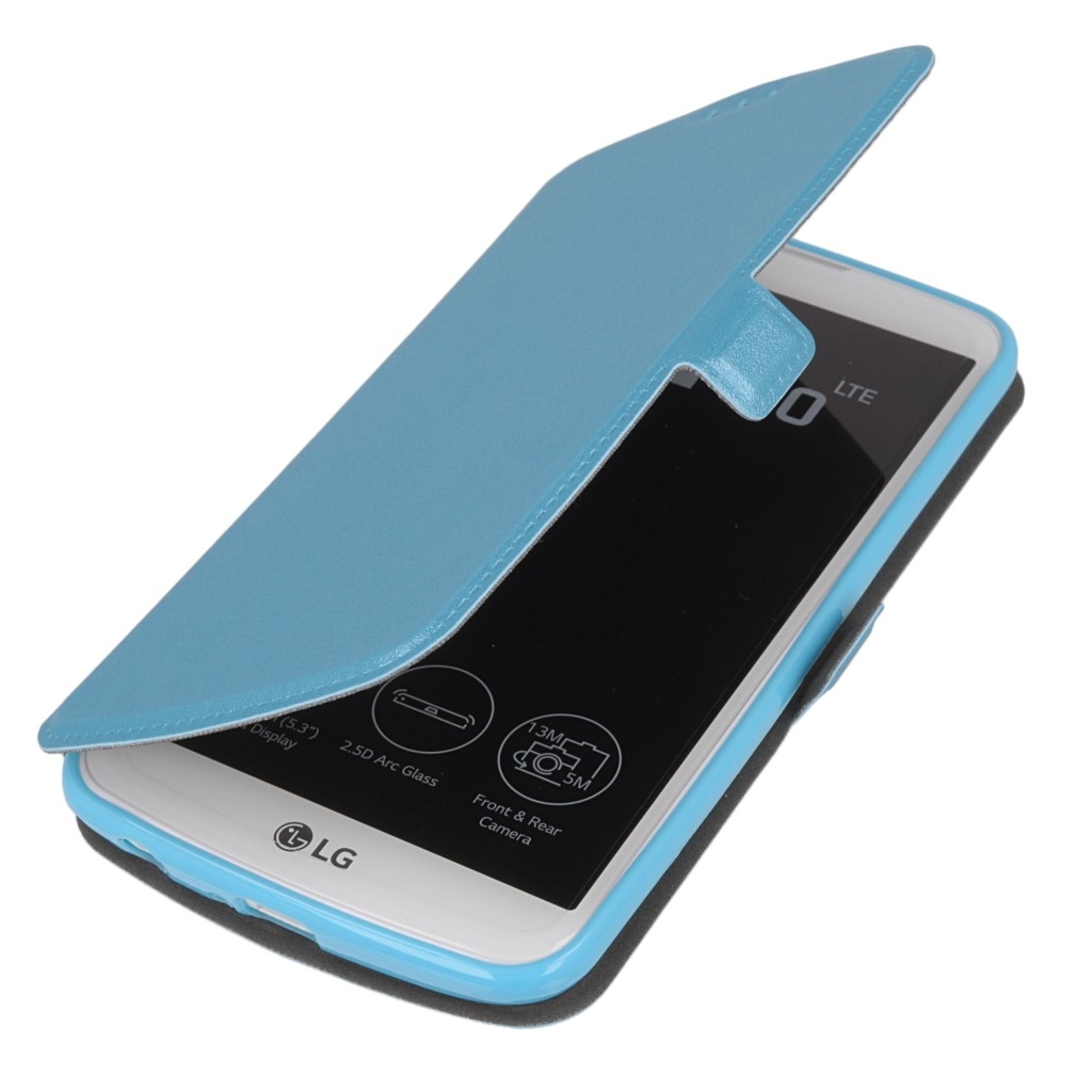 Кожен калъф, тип портфейл и поставка за LG K10 - Wallet Flip Case (син)