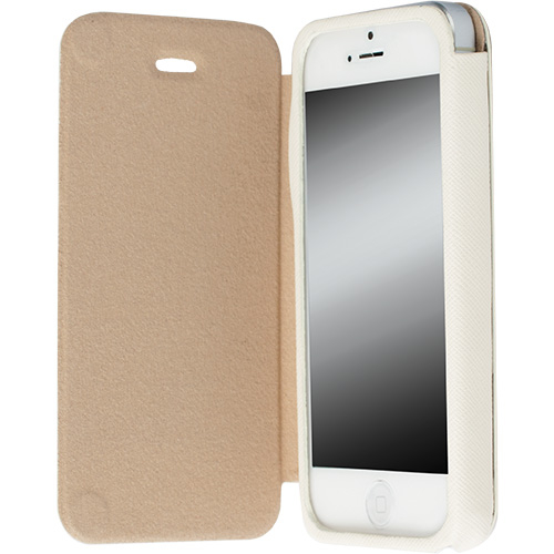 Кожен калъф, тип портфейл за iPhone 5, iPhone 5S, iPhone SE и iPhone 5C - Krusell Malmo Flip cover (бял)