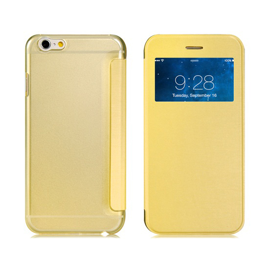 Кожен калъф, тип портфейл за iPhone 6, iPhone 6S - Wallet View Case (жълт)