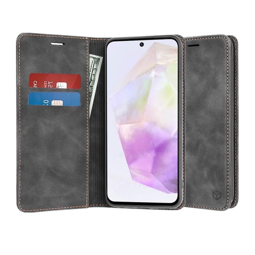 Кожен калъф, тип портфейл за Samsung Galaxy A36 5G - Techsuit Confy Cover Wallet Leather Flip Case (черен)
